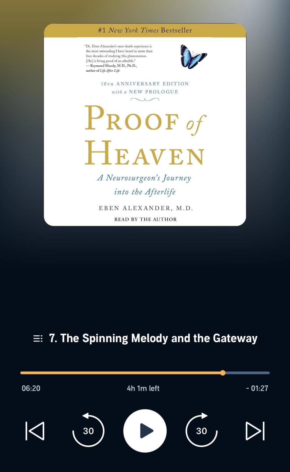 Starting this one up. This will be my last one on the topic of NDE / after life. At least for awhile. I still have to finish Proof of heaven too.