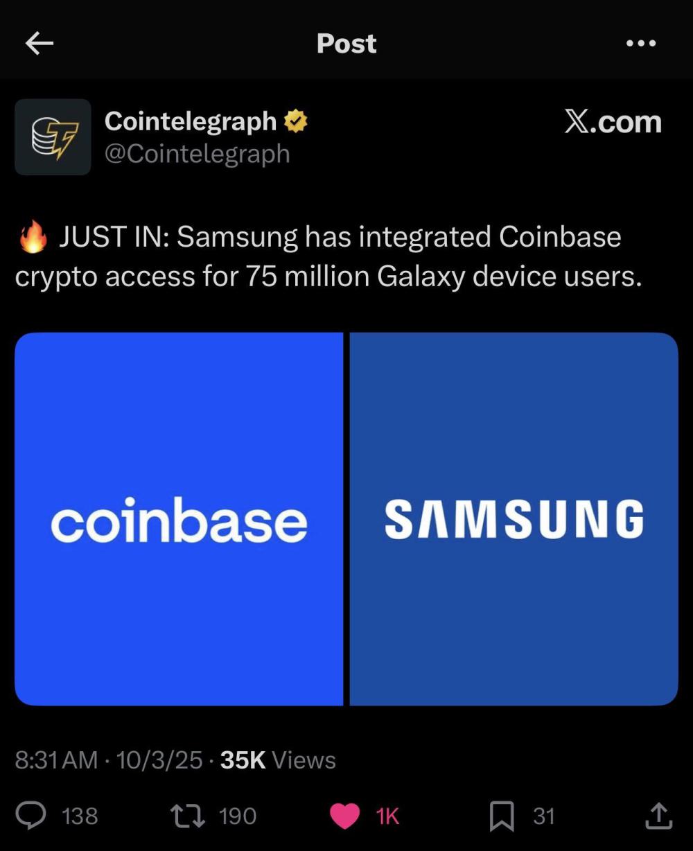 Samsung has partnered with Coinbase