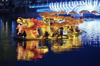 Featuring bamboo rafts linking end to end like a golden dragon, an intangible cultural heritage show from Yangshuo of south China's Guangxi Zhuang Autonomous Region lit up the night in Beijing on Sunday.''Source: [People's Daily China](